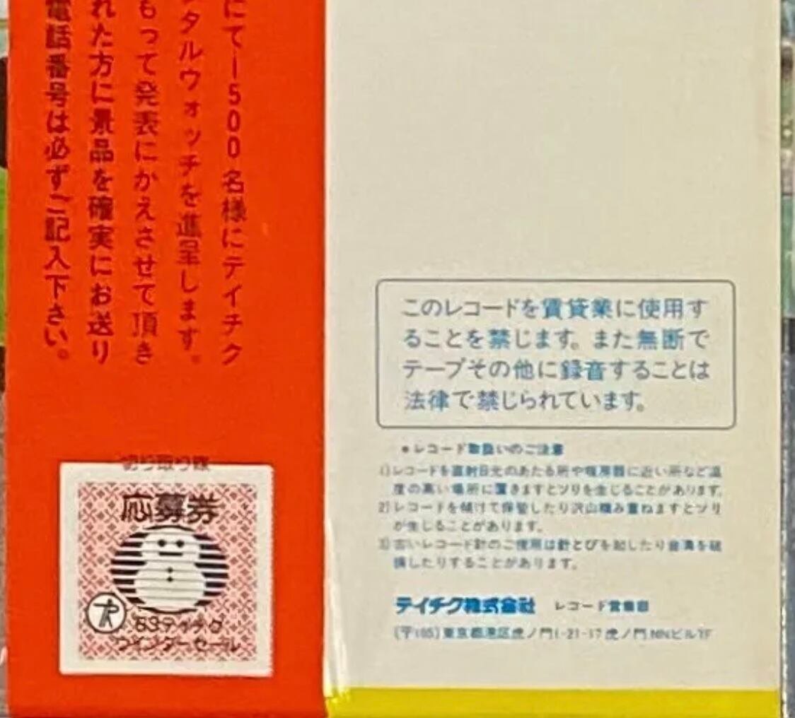ジャケットには写真にあるように、光に当てると分かる程度の傷、側面に傷、薄いシミがあります。帯には小さな破れがあります。盤には擦り傷等なく、音質良好でした。