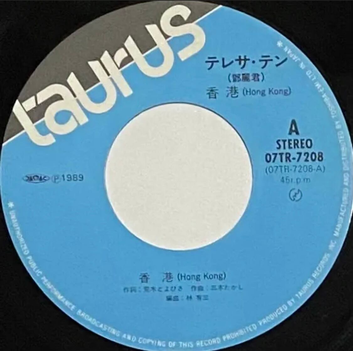 テレサ・テン (鄧麗君) 『香港〜Hong Kong〜 / 星のしずくに濡れて』 EP 07TR-7208