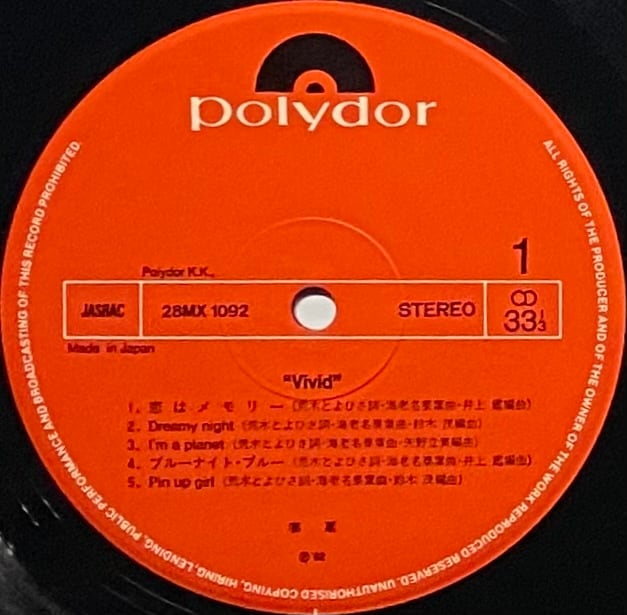泰葉 『ViVid』 LP 28MX-1092