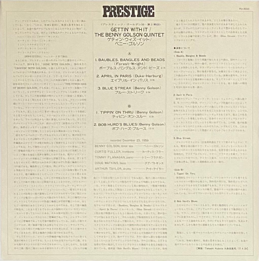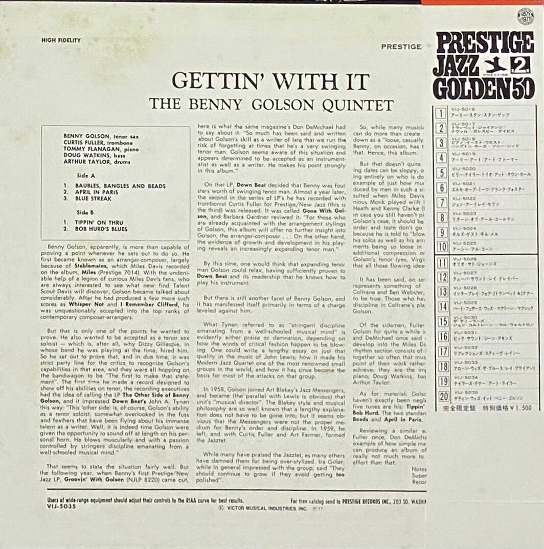 ベニー・ゴルソン 『ゲティン・ウィズ・イット』 国内盤 LP VIJ-5035