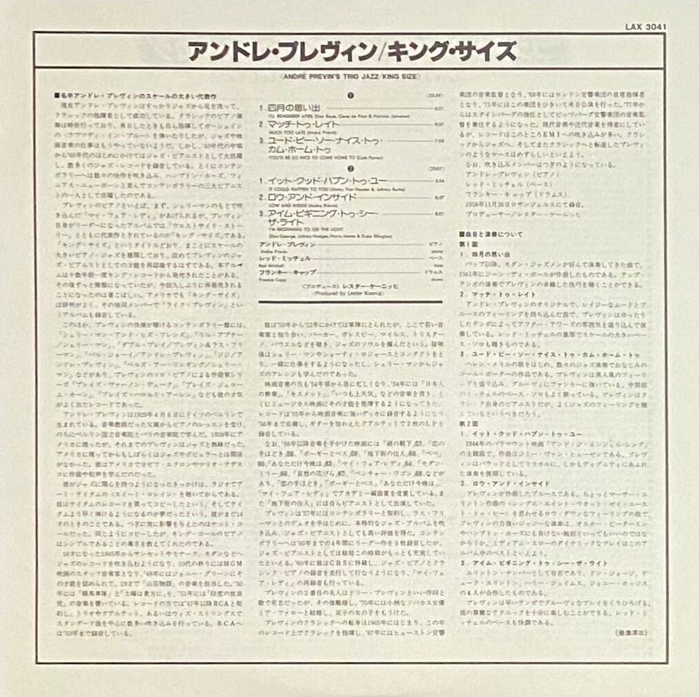 アンドレ・プレヴィン 『キング・サイズ』 国内盤 LP LAX-3041