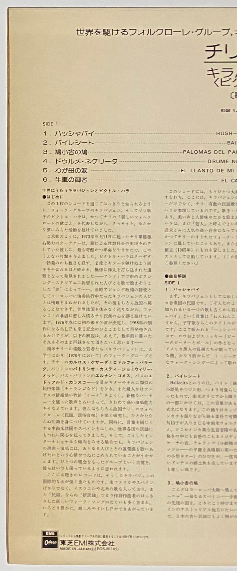 キラパジュン&ビクトル・ハラ 『チリーのコンドル/キラパジュンは羽ばたく』 LP EOS-80385