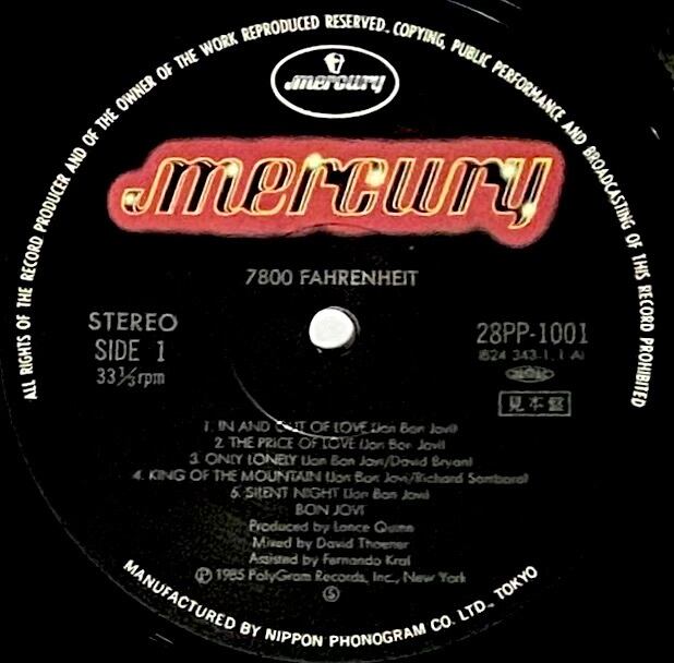 ボン・ジョヴィ 『7800ファーレンハイト』 国内見本盤 LP 28PP-1001