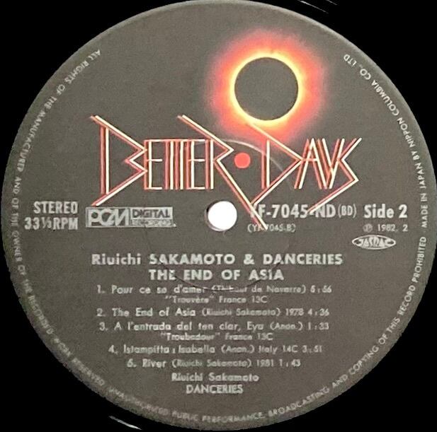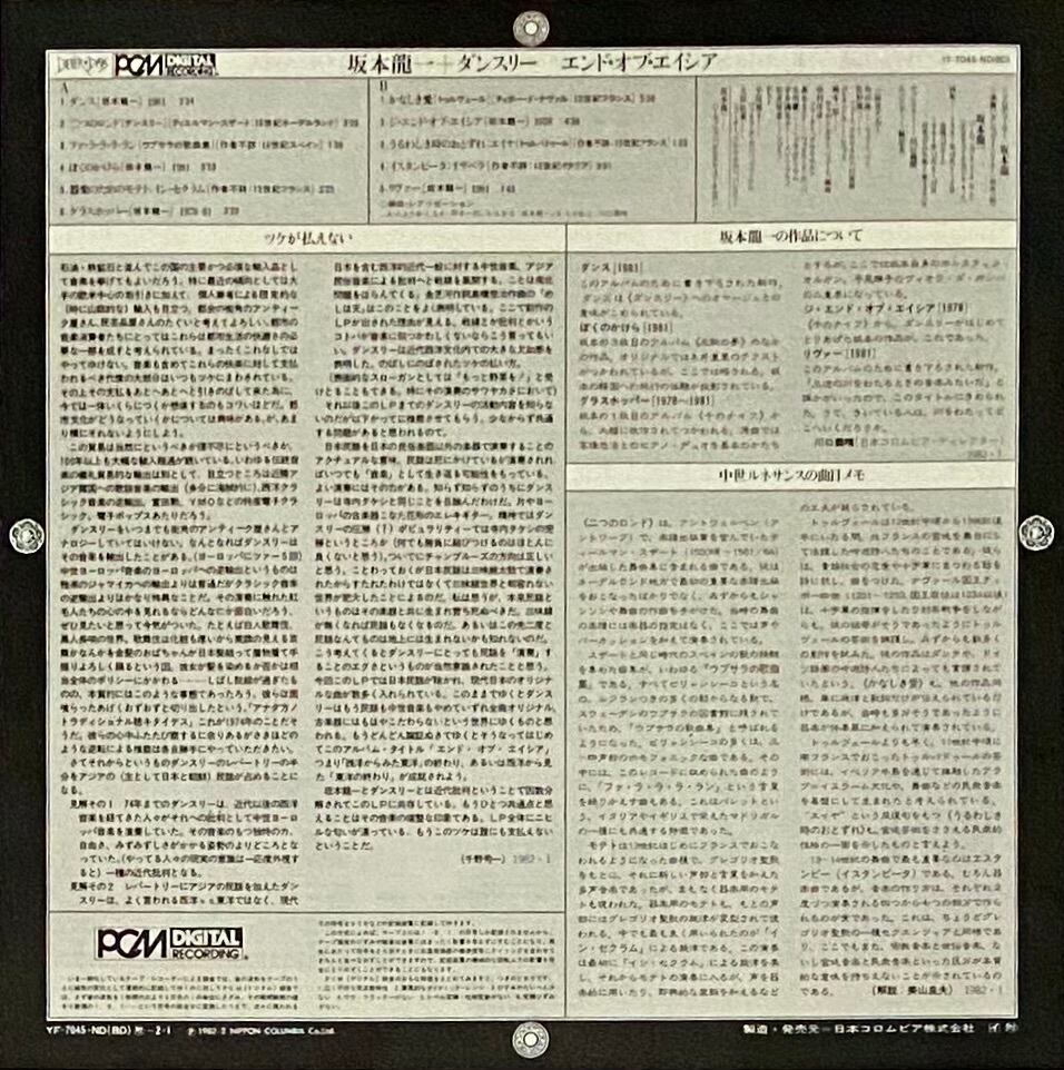 坂本龍一 / ダンスリー 『エンド・オブ・エイシア』 国内盤 LP YF-7045-ND