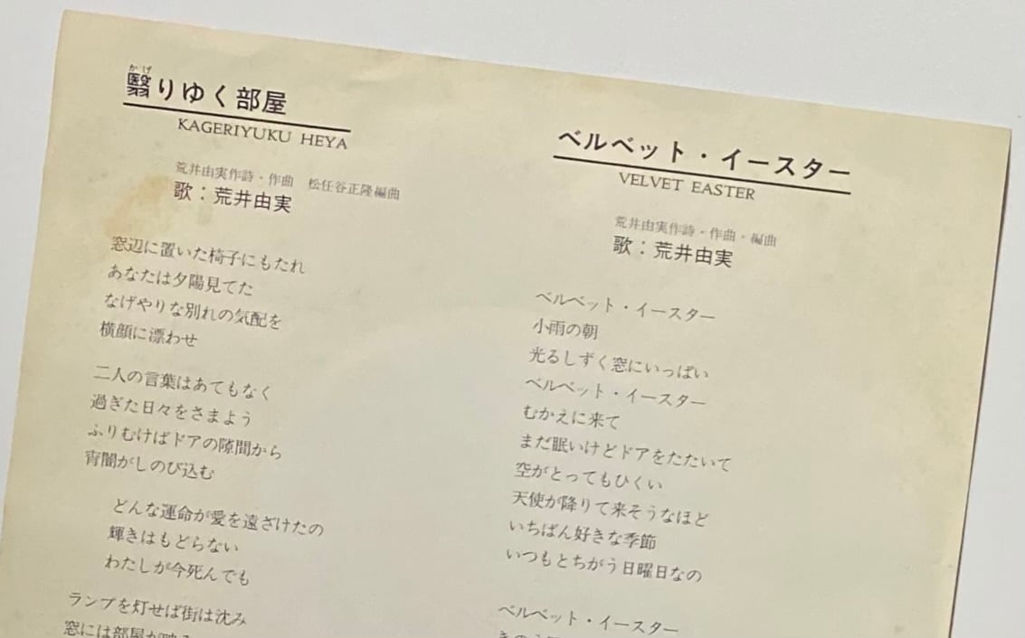 荒井由美 『翳りゆく部屋 / ベルベット・イースター』 見本盤 EP ETP-20227